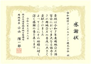 今後もさらなる技術力の向上に努め、公共事業の用地取得をサポートしてまいります。
